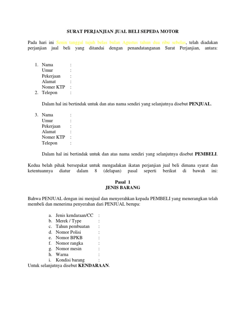 | Judul: 5 Contoh Surat Perjanjian Jual Beli Motor Bekas |